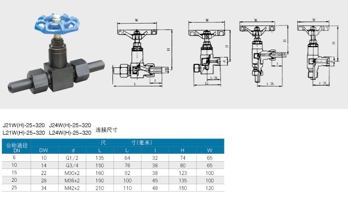 J21W[H]-25~320 L21W[H]-25~320 J24W[H]-25~320 L24W[H]-25~320外螺紋截止、節(jié)流閥